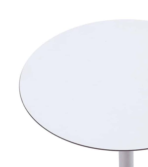 Mesitas con plano disponible en laminado HPL. Columna de acero cromado o recubierto con polvos epoxi. Bases de acero recubiertas con polvos epoxi o revestidas en acero inox brillante. Las bases vienen equipadas para anclarse al suelo. La estructura de apoyo de la repisa de las mesitas Cicerone va equipada con colgadores para bolsos y esta’ realizada en aluminio fundido recubierto con polvo epoxi.