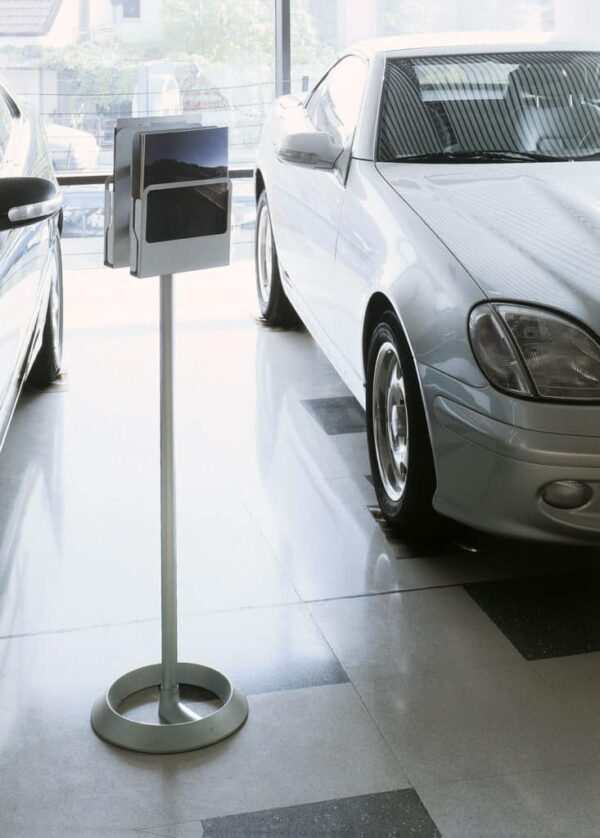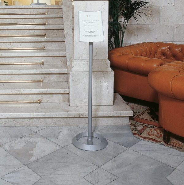 Los expositores del sistema Koala pueden fijarse según las diferentes configuraciones mono o bi-frontales a columnas de acero recubierto con polvos epoxi con bases de acero inox o de fundición recubierto con polvos epoxi.