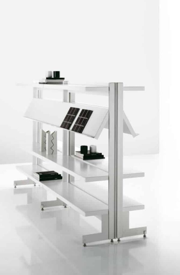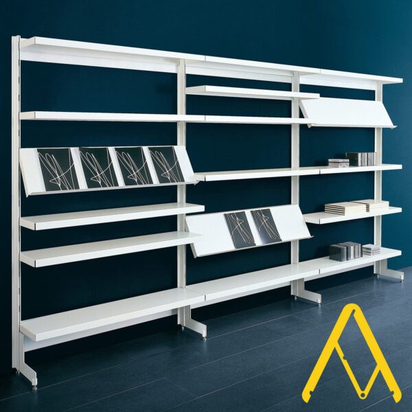 Big es una librería de metal caracterizada por sólidos montantes de aluminio extruido y por repisas de acero con un borde delantero muy marcado. Gracias a sus características la librería Big se adapta a muchos ambientes.