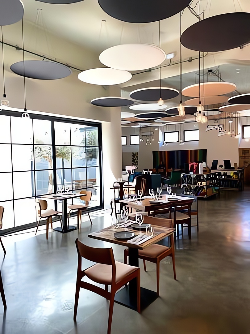 Al ser un elemento acústico suspendido, presenta el doble de área de material de absorción que un panel acústico común, lo que lo convierte en una solución muy efectiva para lugares con techos altos. La altura mínima de instalación de las nubes es de 500 mm y el máximo es de 1180 mm desde el techo.