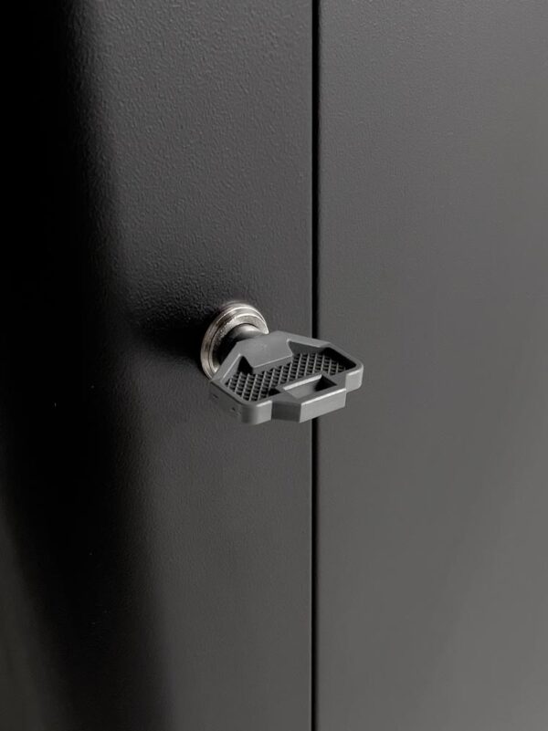 Papelera concebida para la recogida selectiva de residuos y realizada íntegramente en acero barnizado con polvos epoxi. La parte delantera funciona como una puerta que permite una apertura completa para acelerar y simplificar las operaciones de vaciado y sustitución de la bolsa. Dispone de cerradura y llave para garantizar que la apertura se realice solo por parte del personal autorizado.