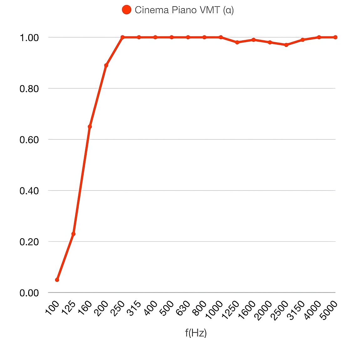 El nuevo panel Cinema Piano VMT es el absorbente estándar de la familia Cinema, de 60 mm de grosor, lo que da como resultado una buena capacidad de absorción.