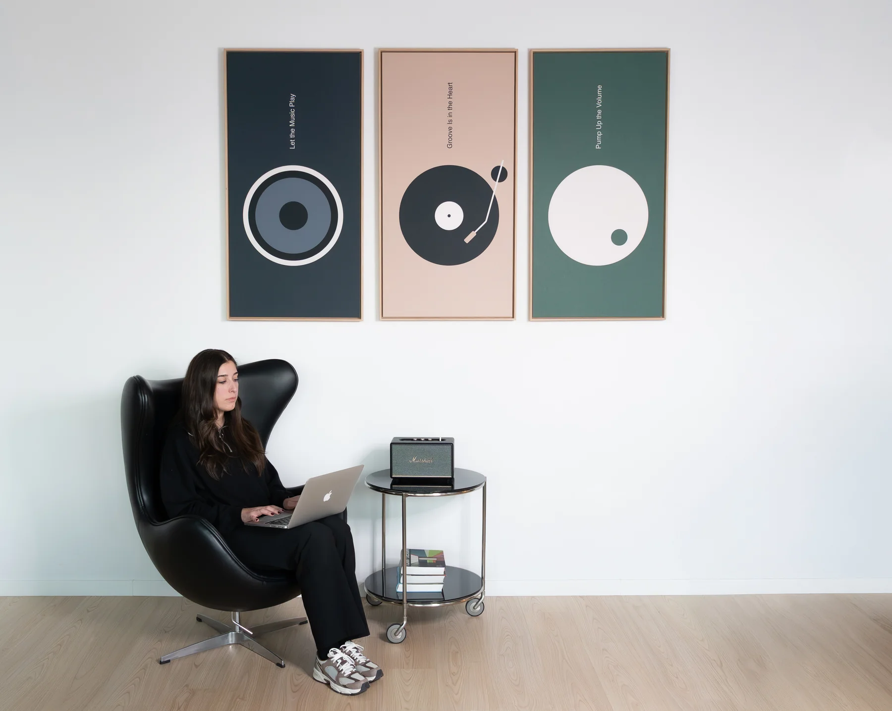 Representando la energía rítmica de los años 80, los paneles acústicos Echo Frame Music convergen arte y sonido a través de un diseño circular. Estos paneles de absorción de sonido conectan la forma visual con la esencia misma de la música y están diseñados con absorción acústica de alto rendimiento.