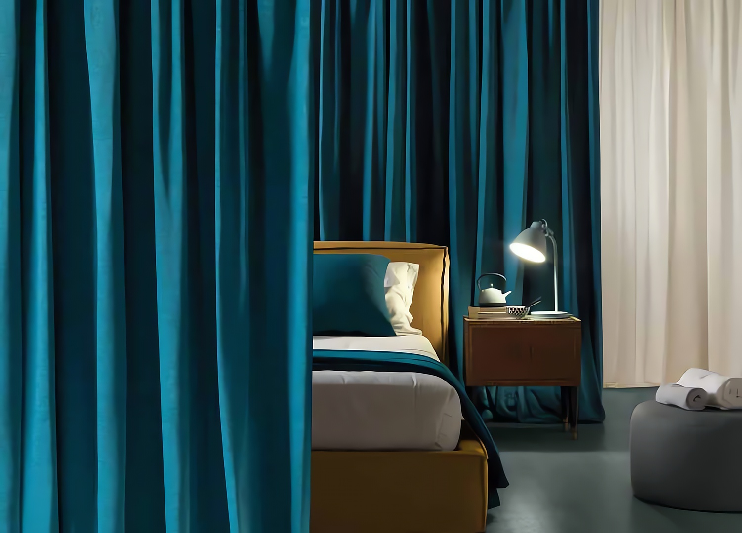FIBER 6 – Tejido acústico suave y voluminoso de tacto aterciopelado, logrado mediante hilados de chenilla que proporcionan una textura flameada, no homogénea, brillante, con efectos de claro-oscuro. Generalmente se coloca con el flameado dispuesto en posición horizontal.