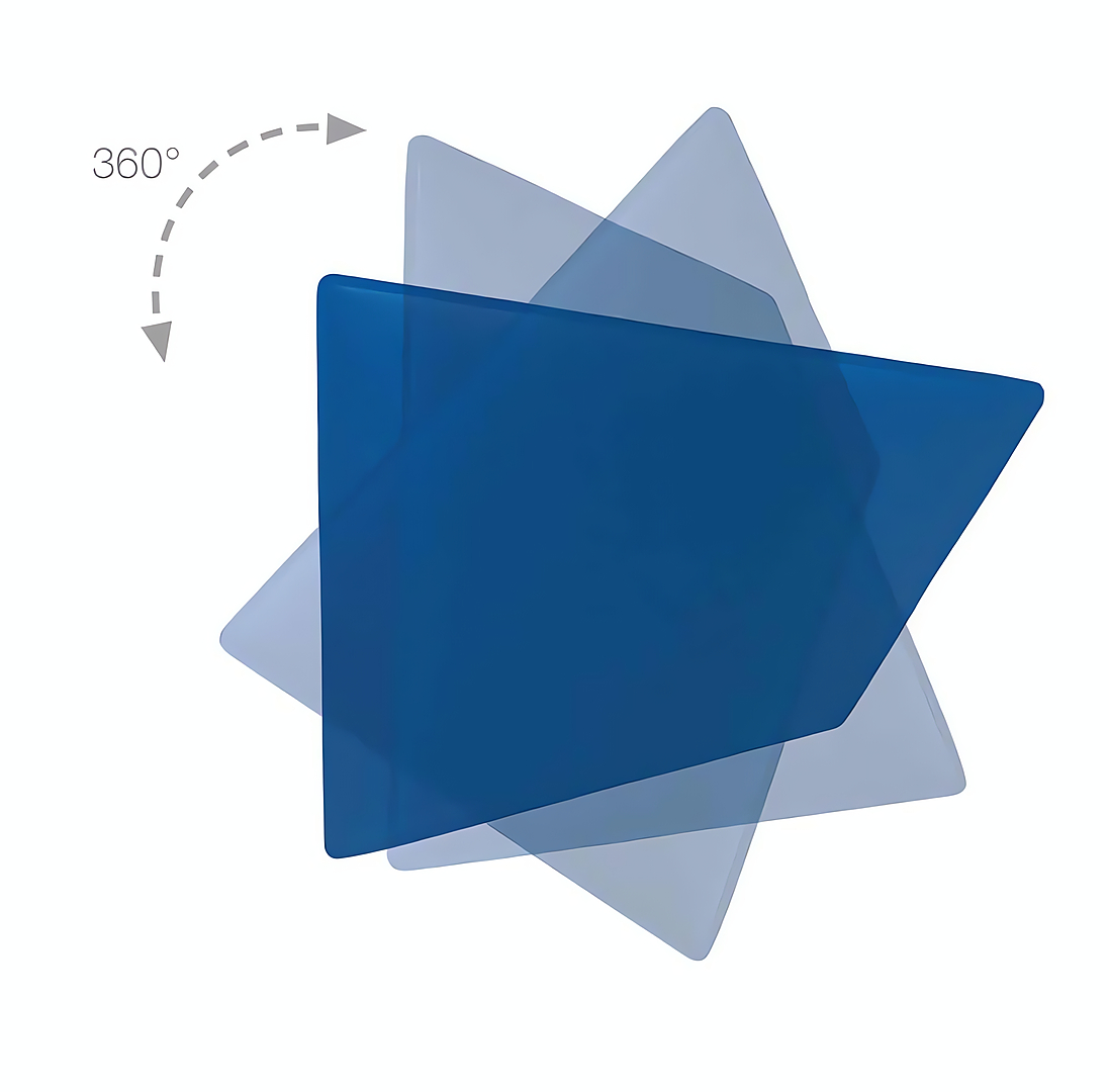 Los paneles Flap llevan en la parte posterior un placa de acero cromado conectada trámite una articulación esférica a un brazo de acero cromado que se puede instalar directamente en la pared o en el techo. Gracias a la articulación esférica el panel puede girar 360° y inclinarse en todas las direcciones para personalizar tanto los aspectos estéticos del producto como también la calibración acústica.