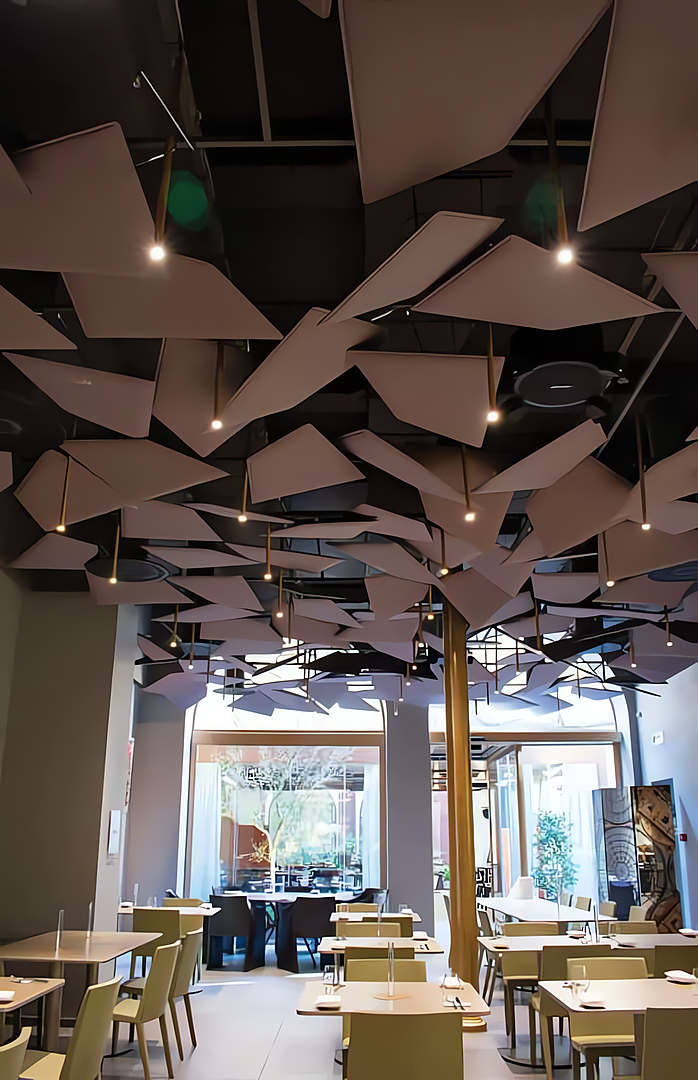 Flap no es tan sólo un panel acústico absorbente, Flap es un objeto de diseño con un notable impacto estético y formal para crear composiciones infinitas con formas cada vez diferentes. Un sistema modular patentado, innovador tanto por la tecnología Snowsound empleada, como por concebir el panel como complemento de decoración que se inserta perfectamente en todas las salas que necesitan una corrección acústica.