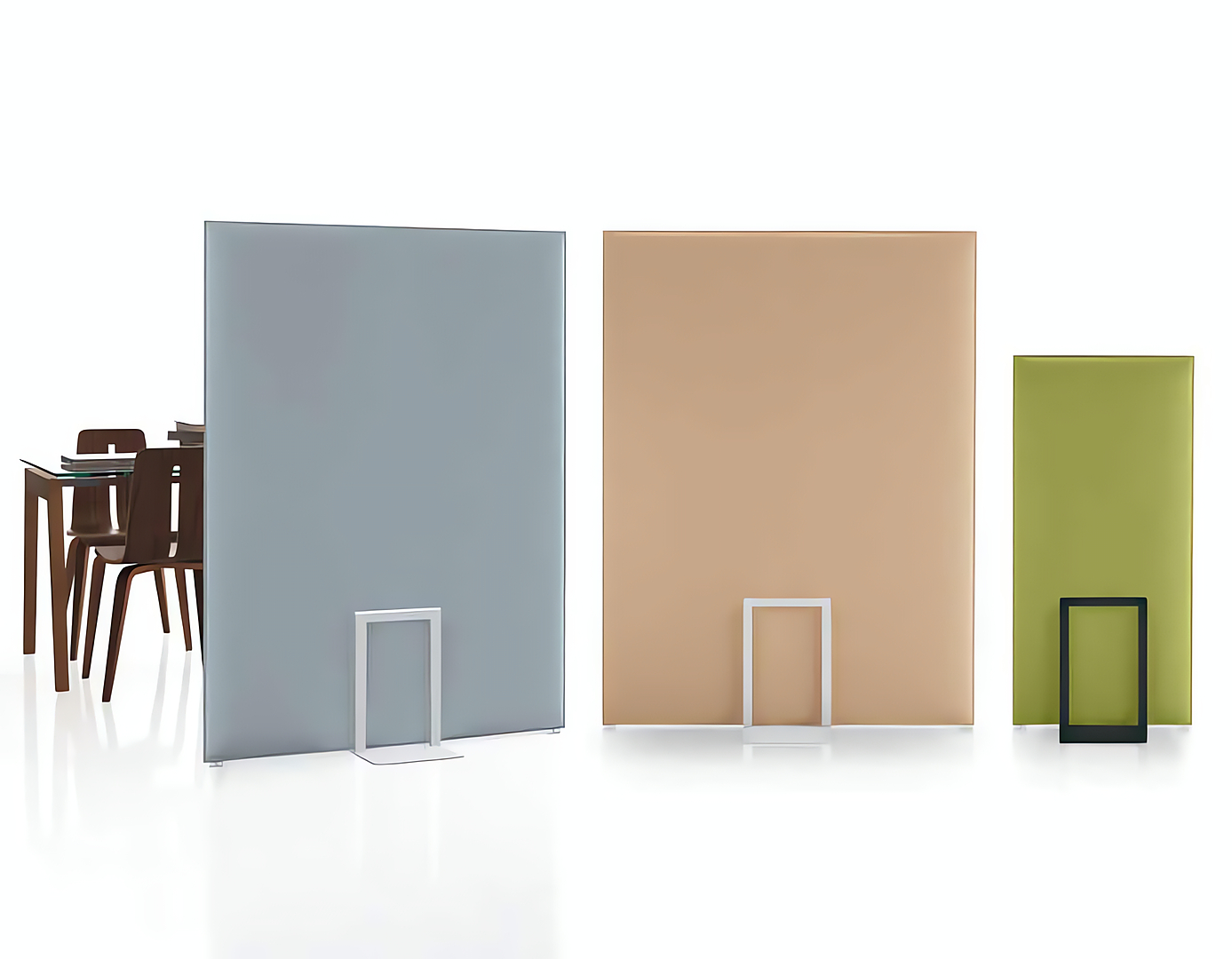 Pli Oversize es una mampara fonoabsorbente que está compuesta por paneles Snowsound, sobre un caballete de acero y que se puede emplear como divisorio dentro de diferentes ambientes.