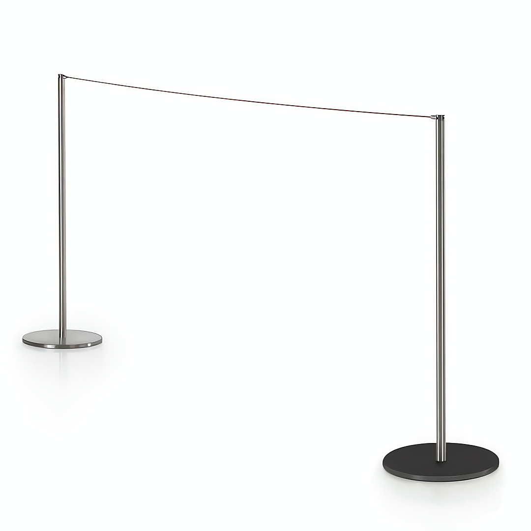 SET está formada por un poste de acero inoxidable satinado con base circular, disponible con acabados en acero inoxidable satinado o recubierta en color negro gofrado. Elemento con 4 fijaciones de rosca para fijar cintas elásticas. Realizado en acero inoxidable satinado. Cinta elástica rematada con fijaciones de rosca en acero y acero inoxidable.