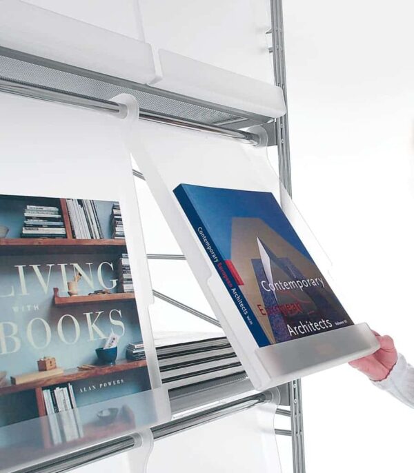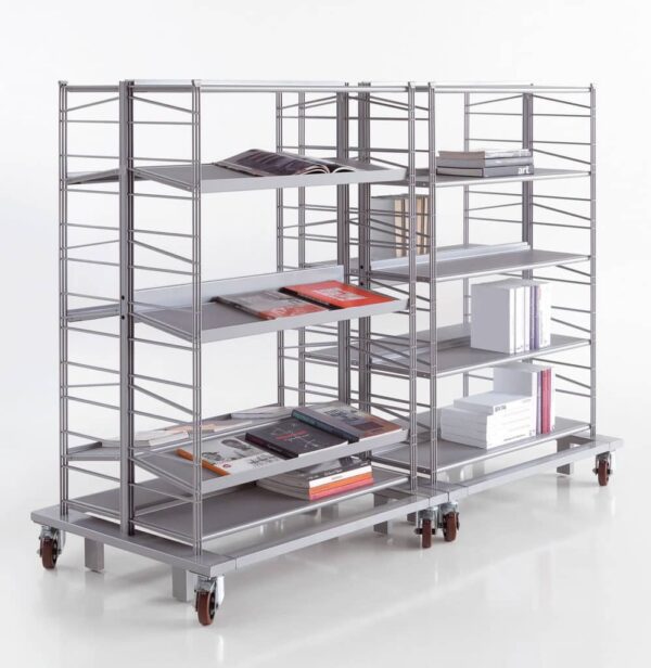 Los estantes microperforados facilitan la circulación del aire mejorando la aireación de los libros reduciendo así la peligrosa formación de humedad.