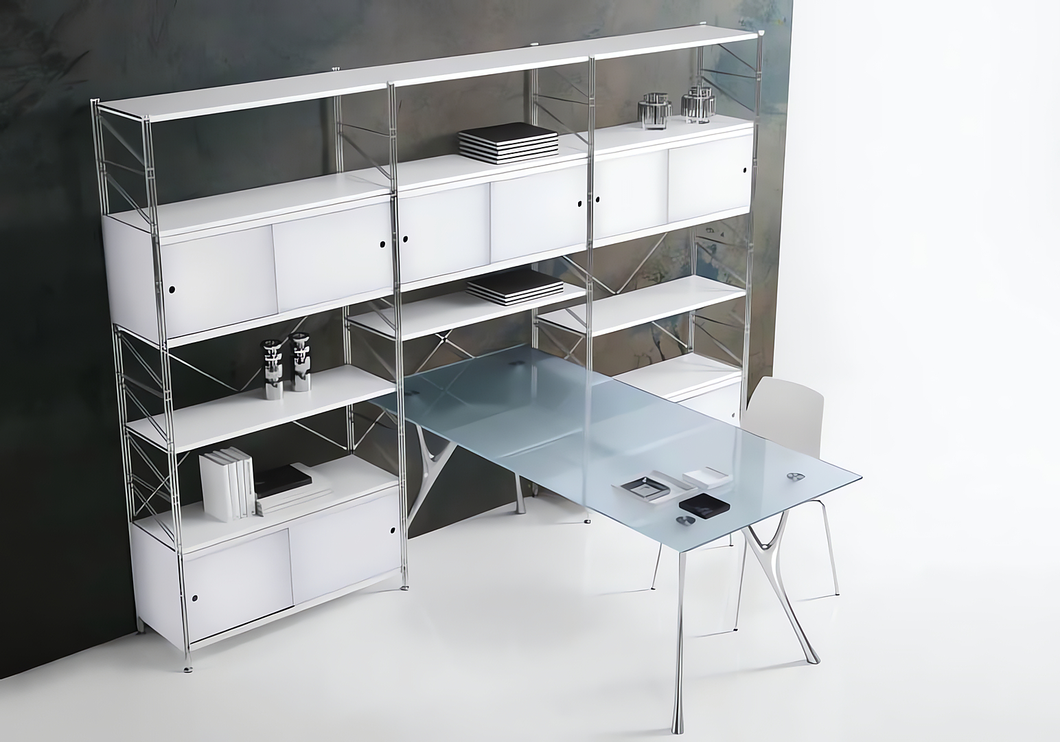 Socrate es un sistema expansible de librerías con estructura en metal caracterizado por la gran flexibilidad de composición, perfecto para hacer frente a necesidades distintas tanto en términos de espacio como de estilo. El sistema Socrate esta’ disponible en versión autoportante y de sujeción en pared.