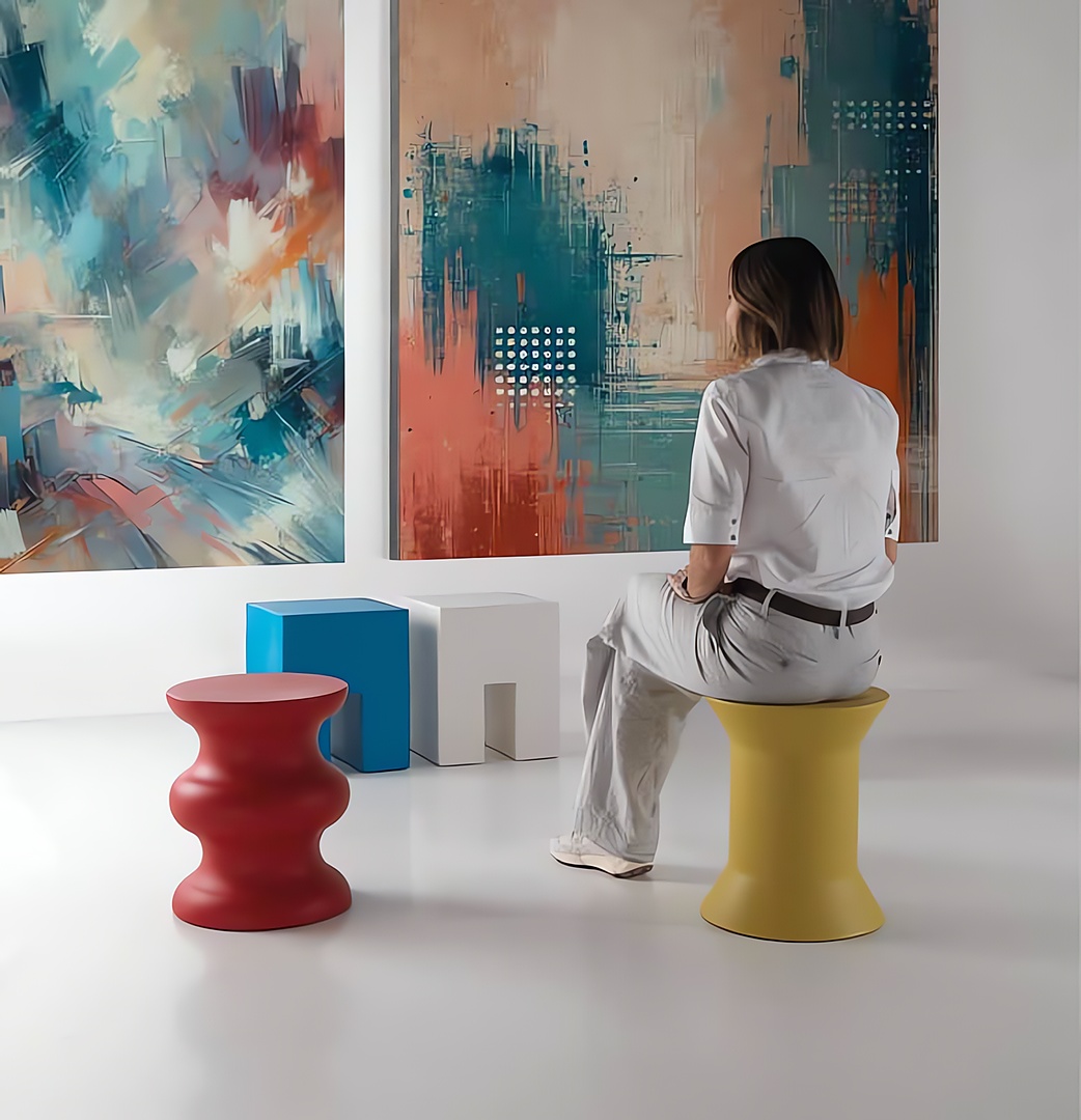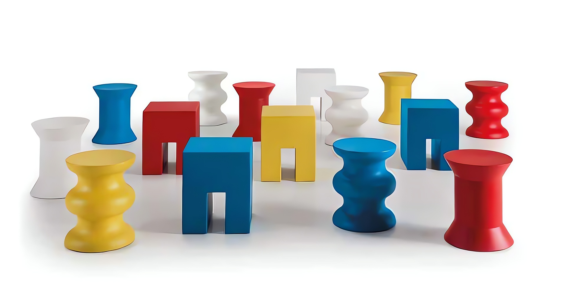Esta colección recoge algunos símbolos característicos del lenguaje estilístico de Alessandro Mendini, que se convierten en objetos tridimensionales y pueden utilizarse como asientos, mesitas o elementos de apoyo. Objetos de naturaleza híbrida, capaces de llenar de color cualquier ambiente, están dotados de una gran versatilidad.