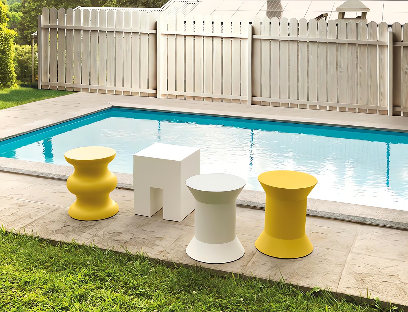 Tres formas diferentes realizadas en tecnopolímero. Superficies curvas y octogonales que se presentan en cuatro colores distintos para organizar espacios en continua transformación. Los materiales y su elaboración permiten su uso tanto en interior como en exterior.